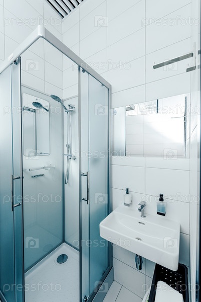 Простой интерьер ванной комнаты в жилом здании, дизайн туалета в гостиничной квартире