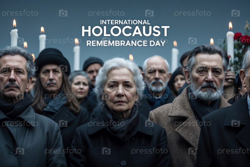 Баннер-постер Международный день памяти Холокоста, Потомки еврейские выжившие ИИ генератив