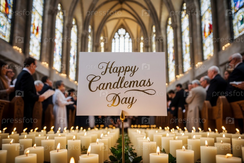 AI Generative Candlemas Day открытка, люди празднуют традиционный праздник в христианской церкви