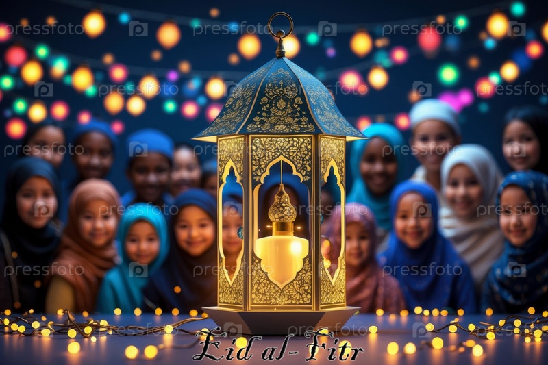 AI Generative Greeting Card with Traditional Muslim Исламский праздник Ид аль-Фитр с символом веры