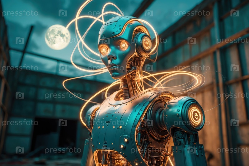 Портрет будущего робота искусственный интеллект, футуристическое завтра компьютерная технология AI Generative