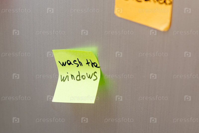Наклейка напоминания, приклеенная к двери холодильника для мытья окон домашние дела