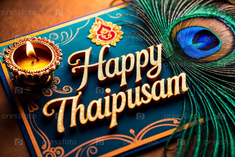 Тайпусам Карта поздравлений с индуистскими праздниками с перцем павлина и фоном масляной лампы AI Generative