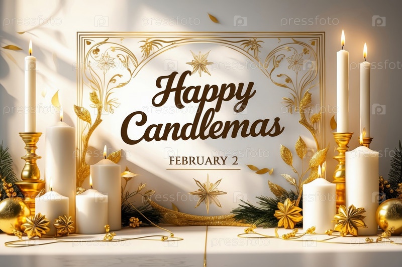 AI Generative Candlemas Day традиция праздничная открытка, надпись на фоне свечей