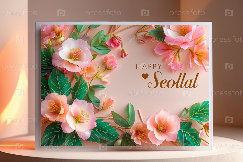 Seollal celebration Счастливый традиционный корейский Новый год Семейная поздравительная карточка открытка AI Generative