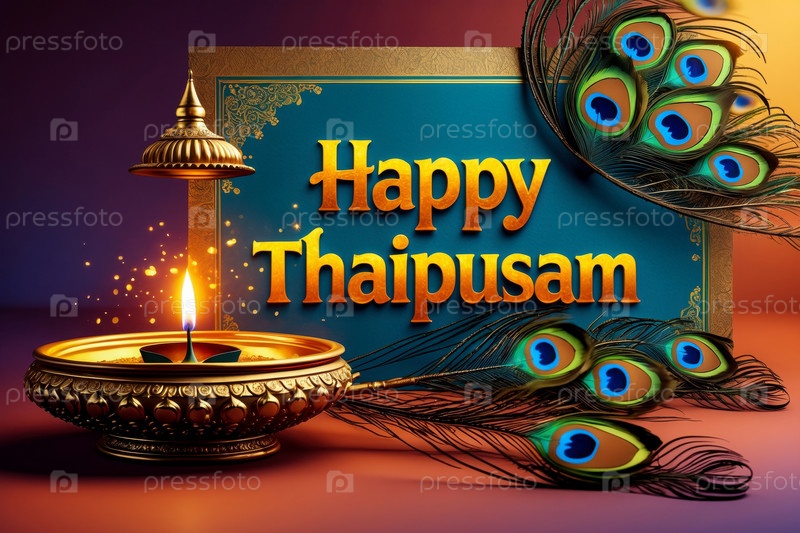 Тайпусам Карта поздравлений с индуистскими праздниками с перцем павлина и фоном масляной лампы AI Generative
