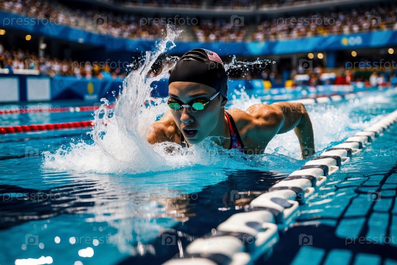 AI Generative Женщина спортсменка пловчик плавание скоростная гонка в бассейне, летние Олимпийские игры соревнования