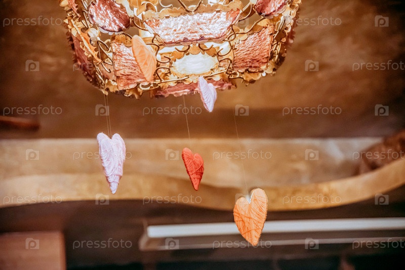 Праздничный декор на День Святого Валентина в интерьере романтического дизайна с сердечными поздравительными открытками