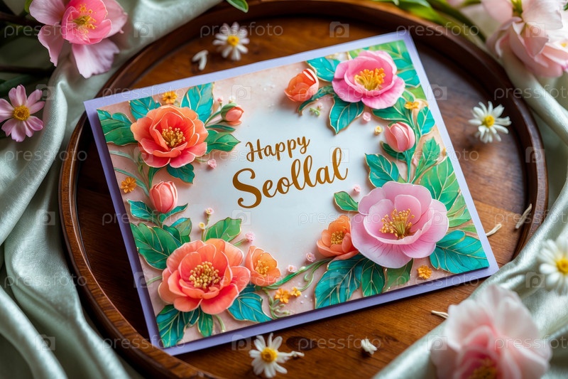 Seollal celebration Счастливый традиционный корейский Новый год Семейная поздравительная карточка открытка AI Generative