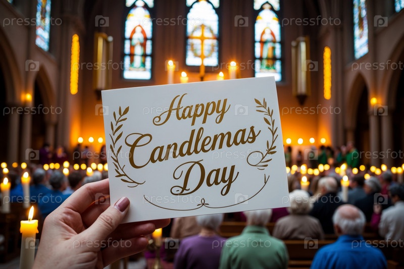 AI Generative Candlemas Day открытка, люди празднуют традиционный праздник в христианской церкви