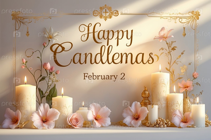 AI Generative Candlemas Day традиция праздничная открытка, надпись на фоне свечей