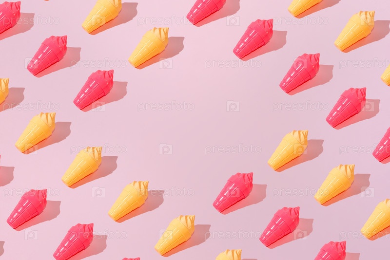 Творческий шаблон ванилового мороженого клубничный конус розовый фон copy space