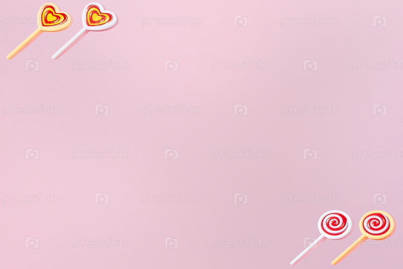Творческий рисунок с круглыми сердечными лилочками плоский лежит на пастельно-розовом фоне с копировальным пространством для текста