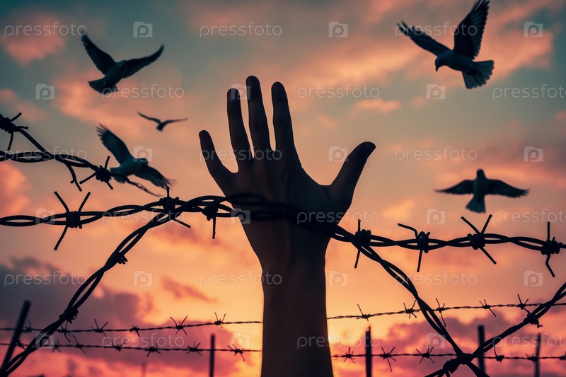 Еврейский концентрационный лагерь рука над колючей проволокой, Международный день памяти Холокоста AI Generative