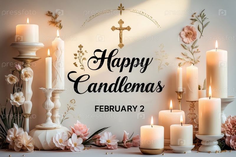 AI Generative Candlemas Day традиция праздничная открытка, надпись на фоне свечей
