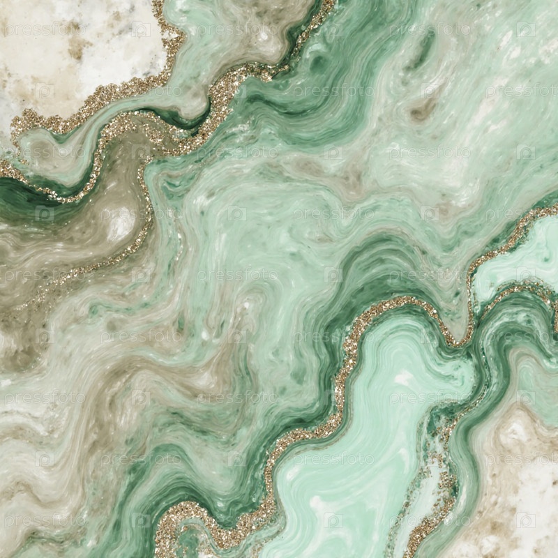 Увлекательные вихри зеленого и бежевого цвета оживают благодаря технике чернил с алкоголем, а блестящие золотые акценты проникают в спокойный дизайн, создавая тихую атмосферу Generative AI