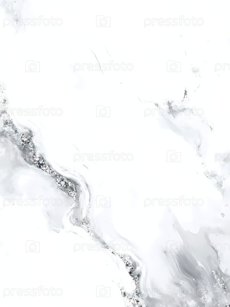 Завораживающее изображение искусства чернил с алкоголем раскрывает смесь мягкого серого и искрящегося серебра на спокойном белом фоне, демонстрируя движение жидкости и текстуру Generative AI