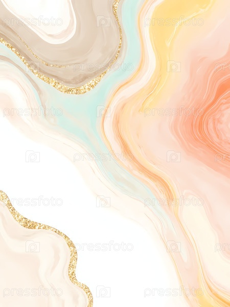 В этом художественном произведении мягкие оттенки плавно сочетаются с чернилами из алкоголя, демонстрируя тонкое движение и золотые акценты, которые вызывают чувство спокойствия и творчества