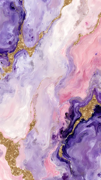 Вихри розового, пурпурного и фиолетового цветов плавно смешиваются, переплетаются с искрящимися золотыми акцентами, создавая завораживающее и текущее произведение искусства, которое очаровывает зрителя Generative AI