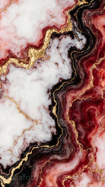Слои черного, золотого, белого и красного цвета плавно смешиваются друг с другом, создавая увлекательный рисунок, который захватывает суть движения и энергии Generative AI