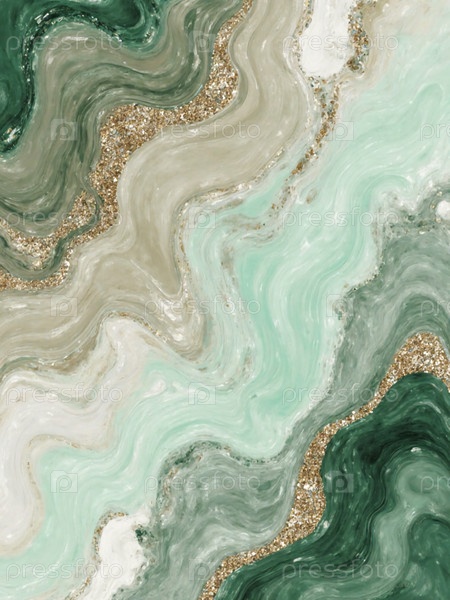 Вихревые узоры глубокого зеленого и мягких беджетов создают завораживающий поток, подчеркиваемый блесками золотых оттенков, демонстрируя красоту искусства чернил алкоголя Generative AI