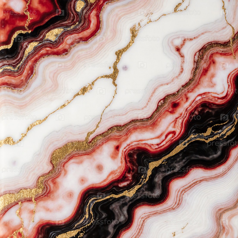 Живые оттенки черного, белого, золотого и красного танцуют вместе в абстрактном шедевре.Текущий дизайн привлекает внимание, демонстрируя красоту искусства спиртных чернил Generative AI