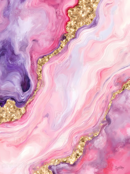 Вихри розового и фиолетового красиво сливаются с деликатными золотыми акцентами, создавая завораживающую сцену, которая вызывает эмоции и творчество