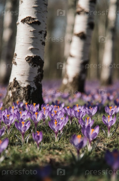 Фиолетовые крокусы покрывают землю, создавая красочный ковер под величественными серебряными березами.Эта мирная сцена захватывает суть весеннего обновления Generative AI