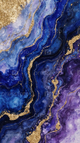 Яркие цвета прекрасно сочетаются, создавая очаровательные узоры, напоминающие океанские волны и сумеречное небо.Золотые акценты добавляют тон элегантности к этому художественному шедевру Generative AI