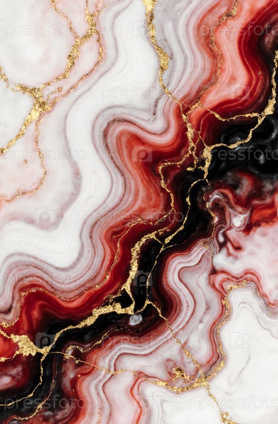 Яркие вихри черного, белого, красного и золотого цветов беспрепятственно соединяются друг с другом, демонстрируя красоту искусства спиртных чернил Generative AI