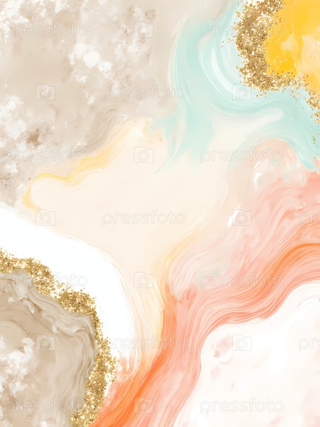Мягкие пастельные оттенки гармонично сочетаются с блестящими золотыми акцентами, создавая увлекательный абстрактный дизайн