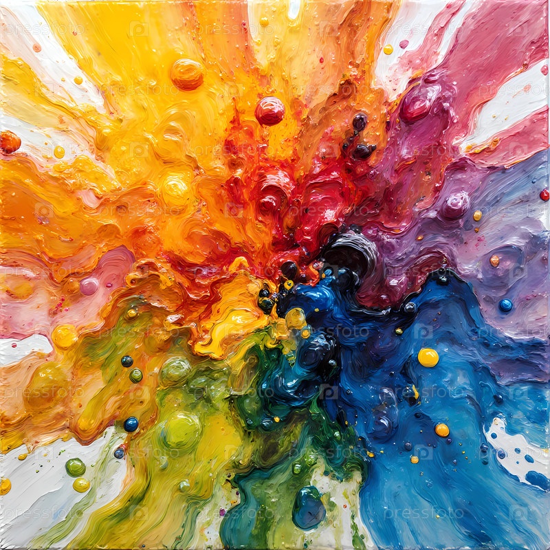 Потрясающий взрыв цветов вспыхивает, вращается и смешивается в радостном хаосе. оттенки красного, оранжевого, желтого, зеленого, синего и фиолетового танцуют вместе, зажигая вдохновение Generative AI