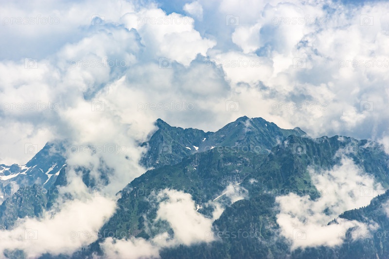 Горные вершины Северного Кавказа в облаках. Краснодарский край