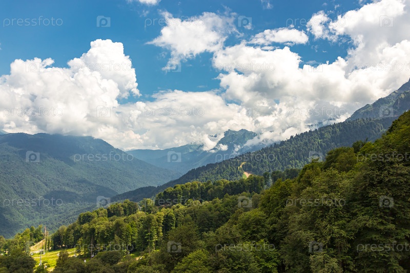 Вид на горы Северного Кавказа со смотровой площадки на высоте 1100 метров. Краснодарский край, Сочи, Адлер, Красная Поляна
