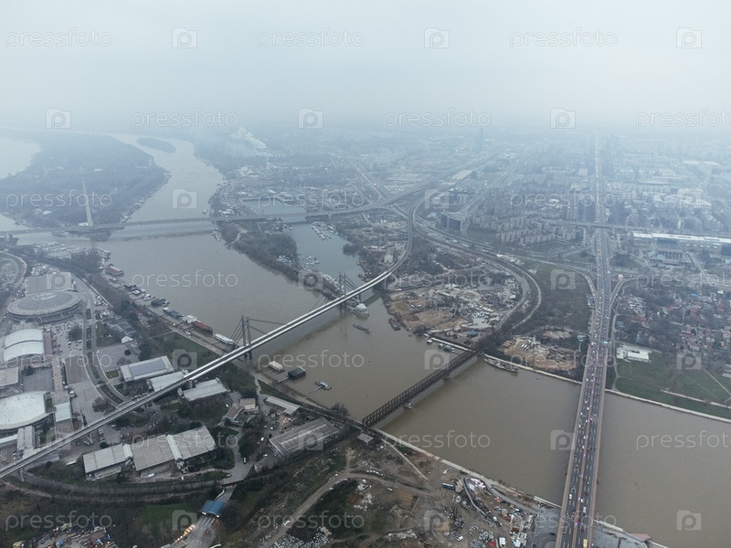Вид с воздушного дрона на перекрестке дороги в Белграде, Сербия, Европа
