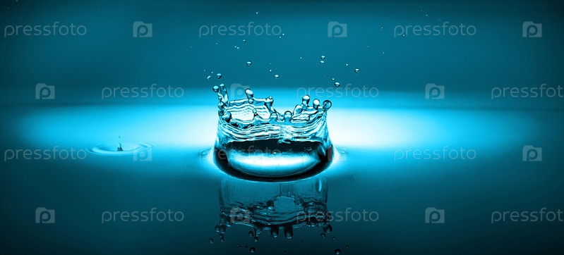 Брызги воды на синем фоне