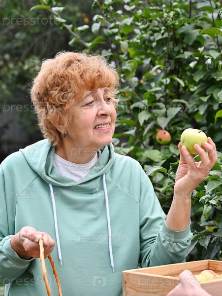 Бабушка предлагает своей внучке вкусное и сочное яблоко, которое она вырастила сама