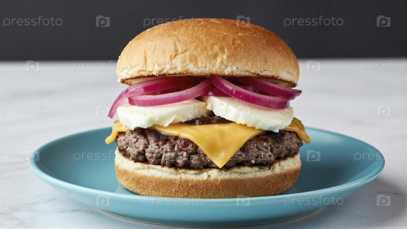 Сочный чизбургер на чайной тарелке