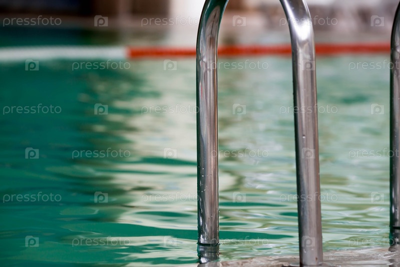 Металлическая лестница в бассейне с чистой бирюзовой водой