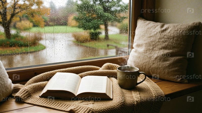 Дождливый день, читая у окна