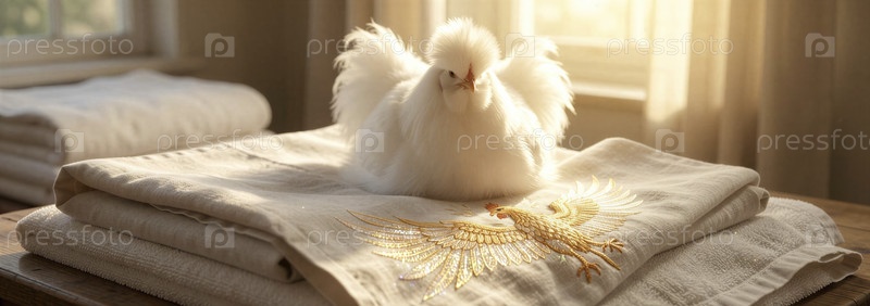 Эфирный голубь на вышитом полотенце