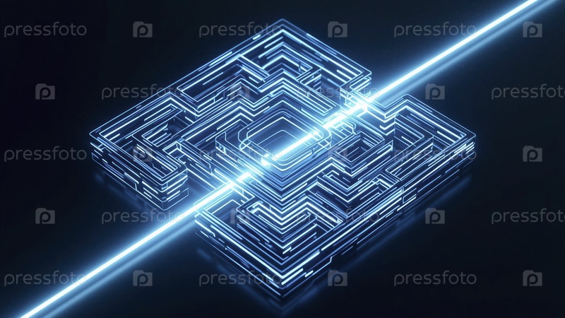 Футуристический неоновый лабиринт с светящимися линиями