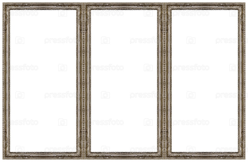 Тройная серебряная рама (триптих) для картин, зеркал или фотографий, изолированных на белом фоне