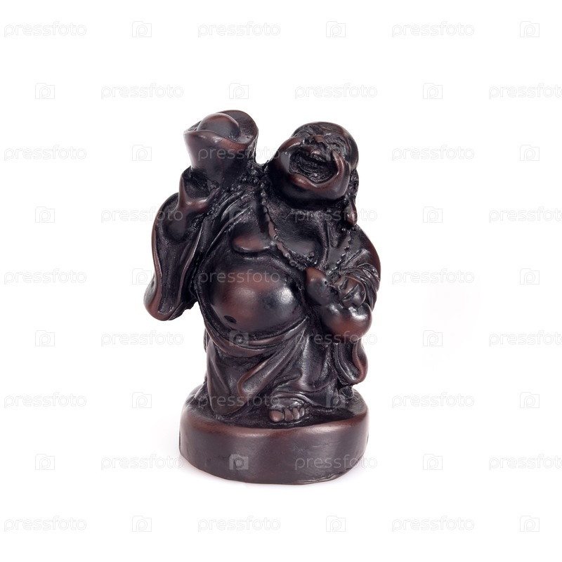 Фигурка японского божества богатства Хотэй, веселья и счастья, изолированная на белом фоне