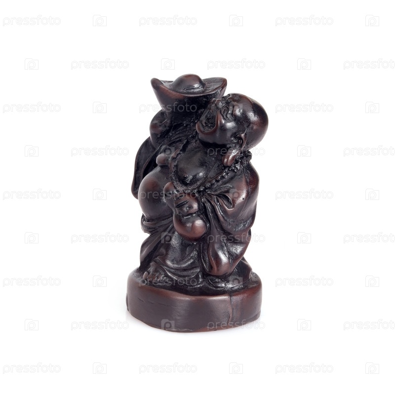 Фигурка японского божества богатства Хотэй, веселья и счастья, изолированная на белом фоне