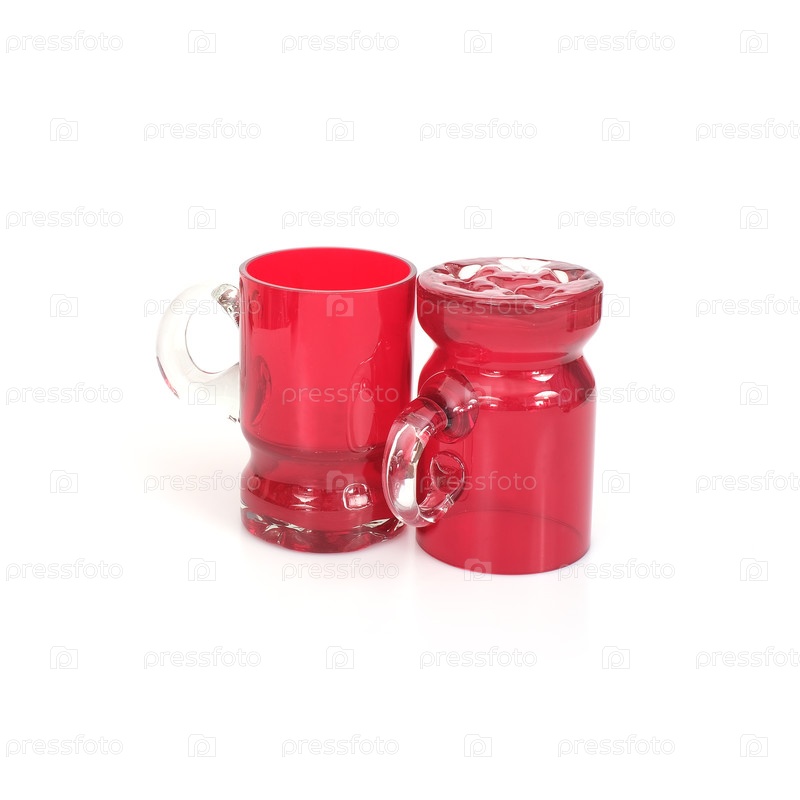 Рубиновые стеклянные кружки изолированы на белом фоне
