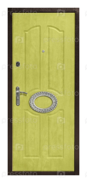 Модель входной металлической двери, изолированной на белом фоне