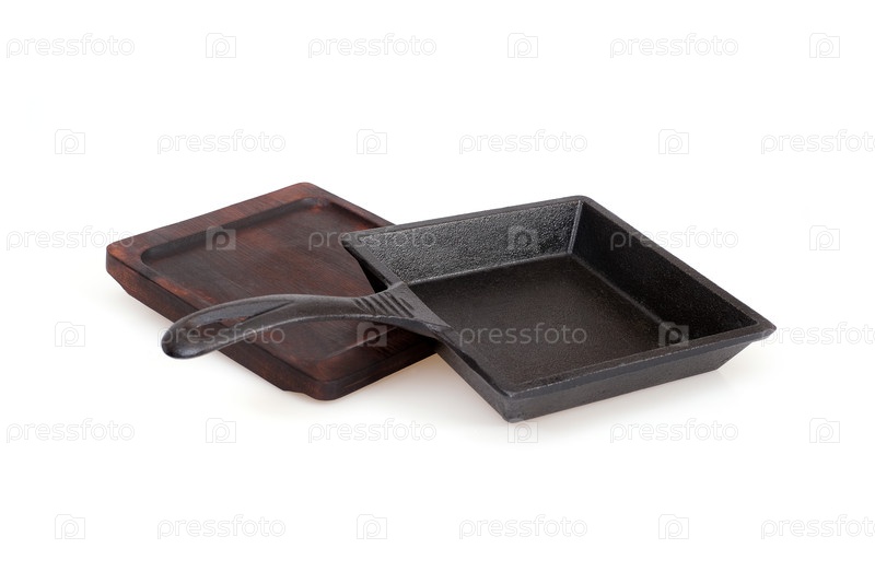 Черная квадратная чугунная сковородка изолирована на белом фоне
