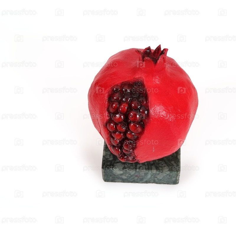Зрелый гранат с зернами, изолированными на белом фоне (сувенирная статуя)