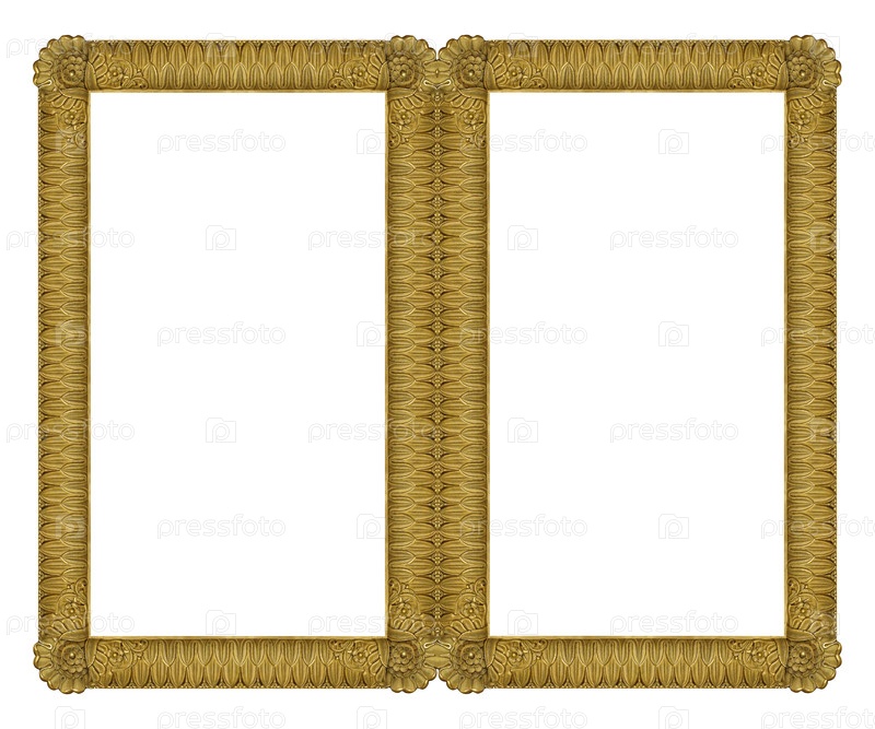 Двойная золотая рама (диптих) для картин, зеркал или фотографий, изолированных на белом фоне